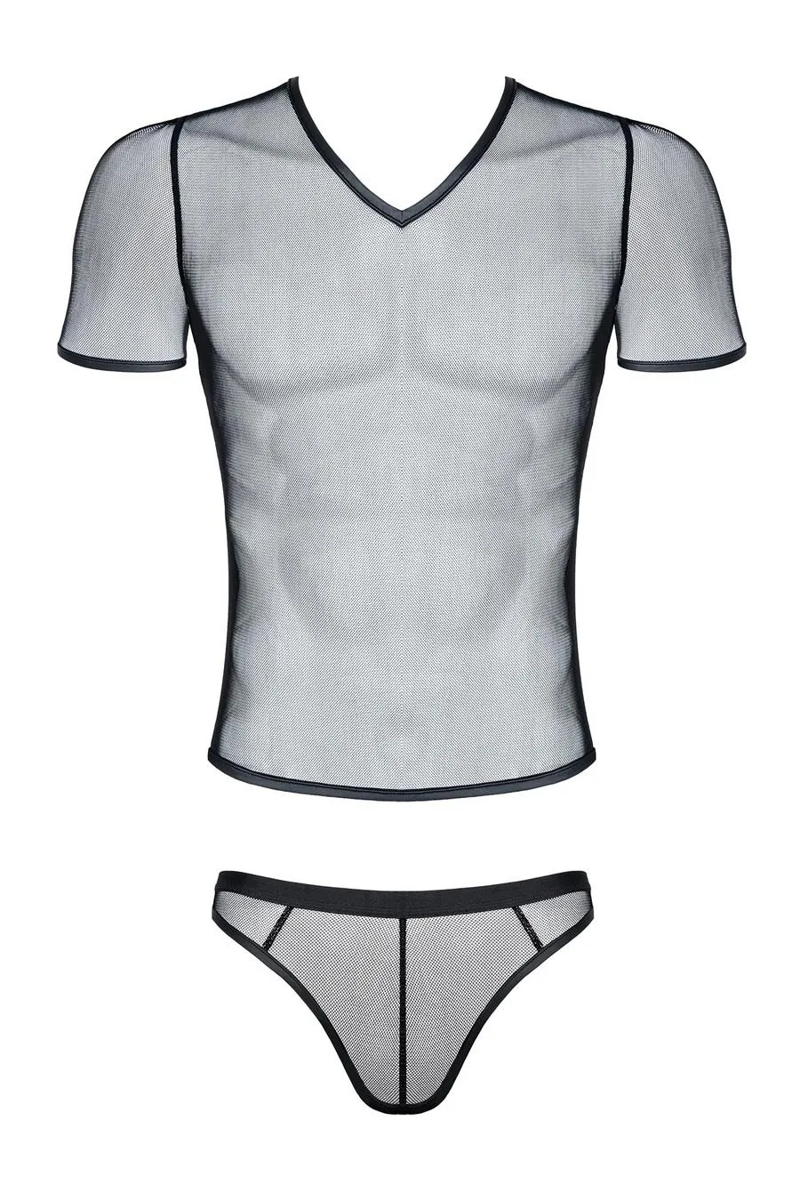 Komplet męski z elastycznej siatki RFP to idealna propozycja dla mężczyzn, którzy poszukują wyjątkowej bielizny o nowoczesnym designie. Stworzony z myślą o osobach, które cenią sobie zarówno komfort, jak i seksowny styl, ten zestaw łączy w sobie innowacyjność i odwagę. T-shirt w serek oraz stringi wykonane z delikatnej, elastycznej siateczki dostosowują się do kształtu ciała, podkreślając atuty sylwetki w sposób pełen klasy.
