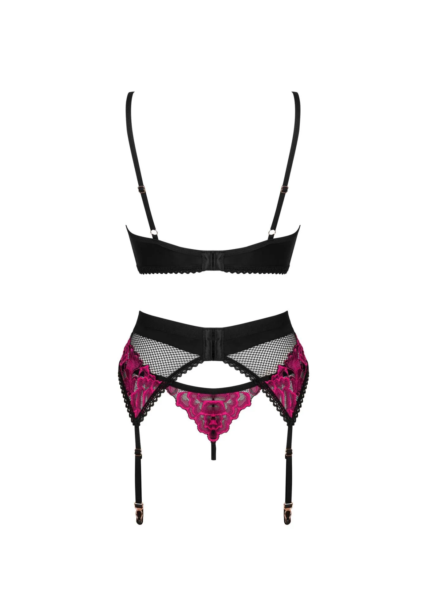 Zestaw bielizny OBSESSIVE to doskonały wybór dla kobiet, które pragną poczuć się wyjątkowo i zmysłowo. Biustonosz, stringi oraz pas do pończoch zostały starannie zaprojektowane z myślą o podkreśleniu kobiecej urody i zapewnieniu maksymalnego komfortu. Oryginalny kwiatowy wzór to nie tylko estetyka, ale także znak rozpoznawczy, który sprawi, że Twoja bielizna stanie się nie tylko praktycznym elementem, ale również elegancką ozdobą.