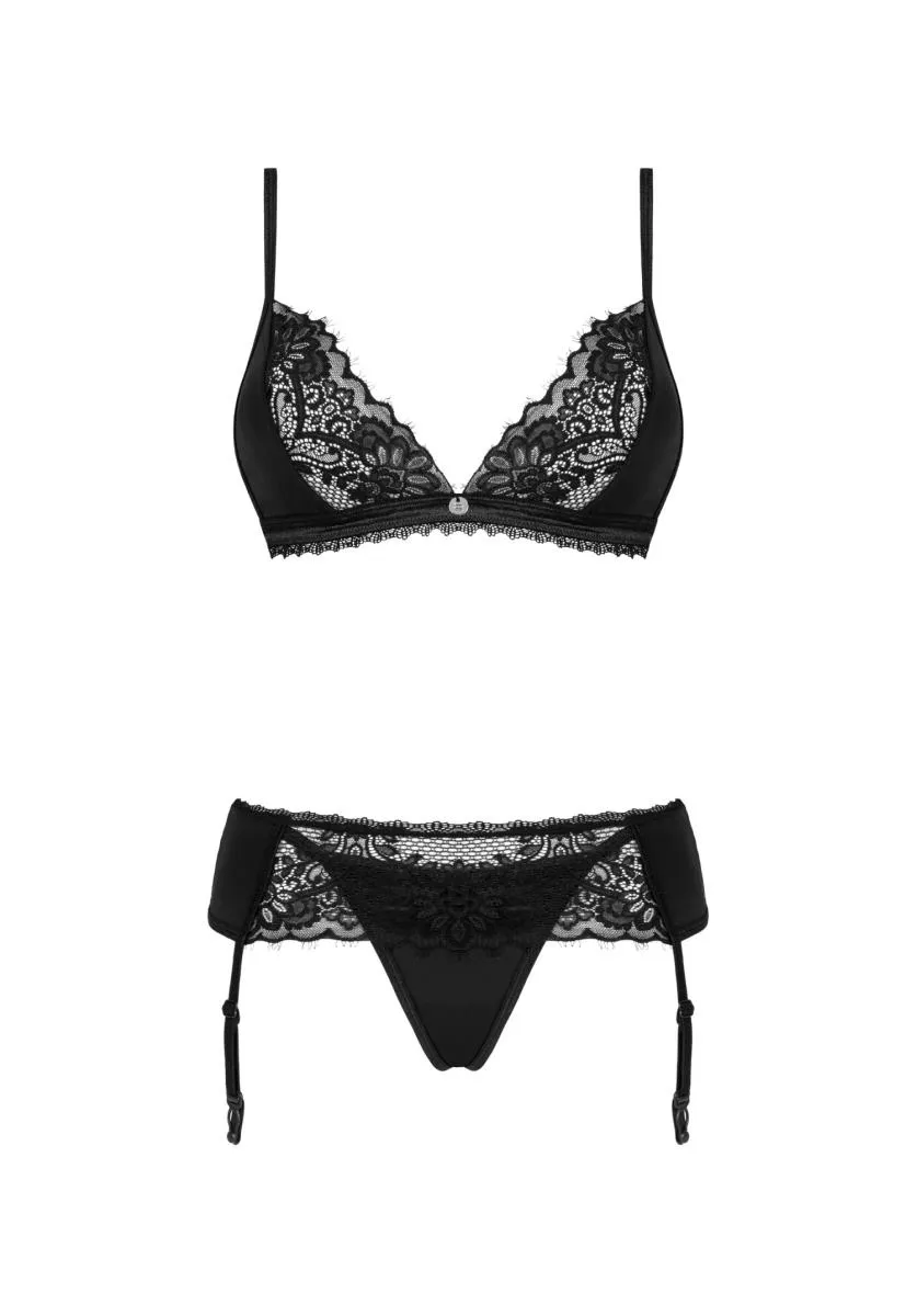 Przedstawiamy komplet bielizny Maderris, który łączy w sobie zmysłowy design i elegancki styl. Ten trzyczęściowy zestaw w kolorze czarnym jest idealnym wyborem na szczególne okazje, pozwalając Ci poczuć się wyjątkowo i uwodzicielsko. W skład kompletu wchodzą: biustonosz, stringi oraz pas do pończoch, które razem tworzą harmonijną całość. Dzięki temu staniesz się bohaterką wieczoru, a Twoja pewność siebie wzrośnie.