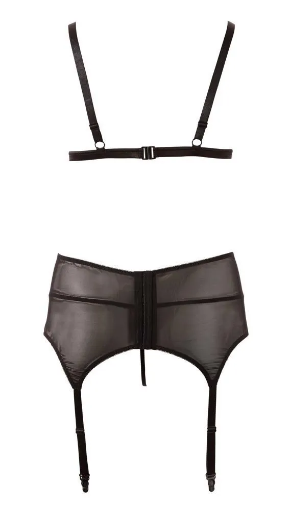 Koronkowy zestaw Bra Suspender Set 3XL to perfekcyjny wybór dla kobiet, które pragną połączyć elegancję z odrobiną zmysłowości. W skład zestawu wchodzi miękki biustonosz z otwartymi miseczkami, który idealnie podkreśla dekolt. Regulowane ramiączka oraz zapięcie na haftki z tyłu zapewniają komfort noszenia oraz optymalne dopasowanie do sylwetki.