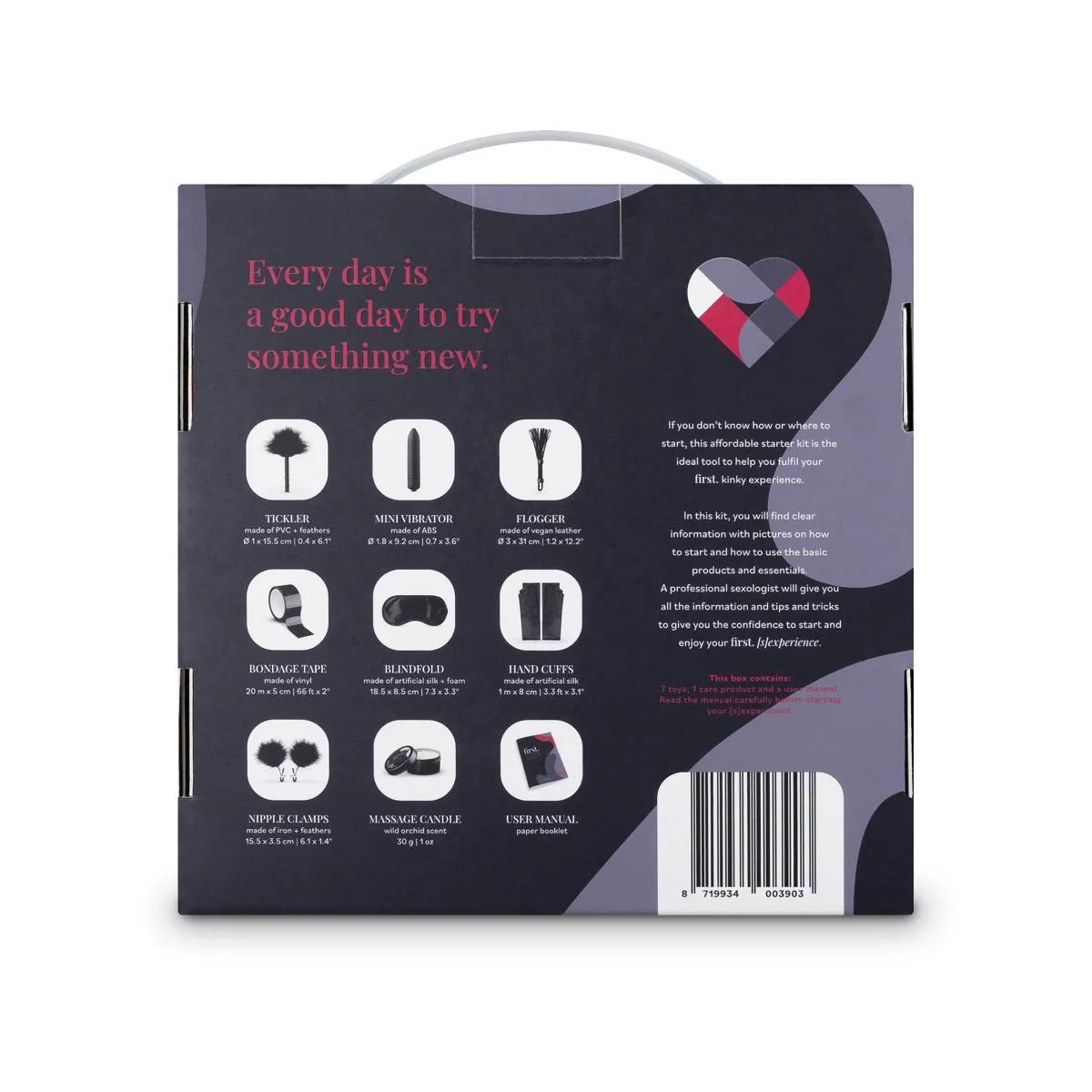 Nasza instrukcja w języku angielskim zawiera cenne wskazówki oraz porady, które pomogą Ci w pełni wykorzystać możliwości oferowane przez zestaw First. Kinky [S]Experience. Dzięki niej poczujesz się pewnie, eksplorując nowe aspekty swojej seksualności. Wymiary poszczególnych produktów zapewniają komfort i bezpieczeństwo ich użytkowania, co jest niezwykle ważne w każdej przygodzie BDSM. Zaczynaj swoją podróż do świata przyjemności już dziś!