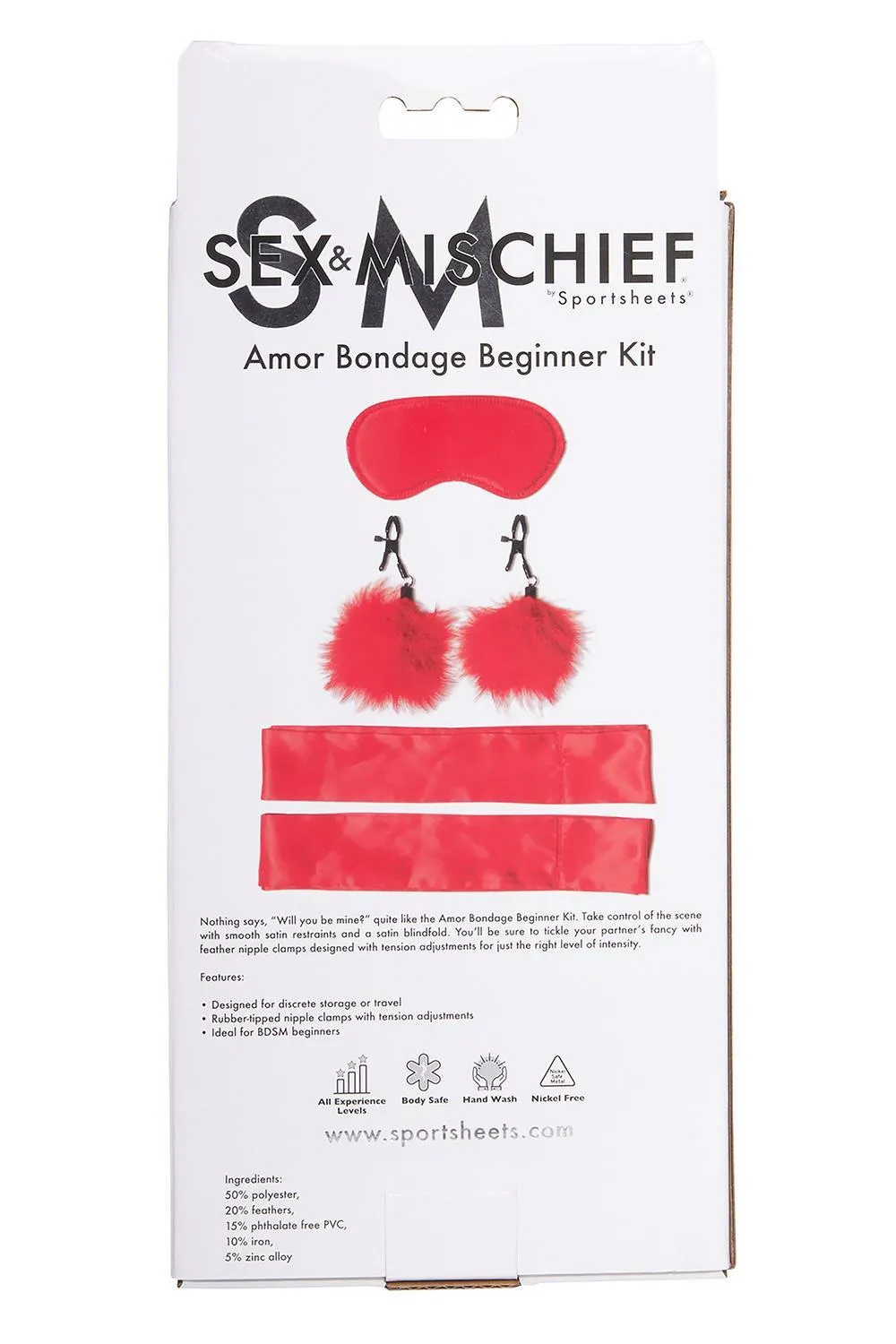 Odkryj świat intymnych doznań z zestawem do bondage dla początkujących SPORTSHEETS AMOR. Ten ekskluzywny zestaw to idealne wprowadzenie do BDSM, łącząc elegancki design i funkcjonalność. Wykonany z wysokiej jakości satyny, zestaw zawiera sztukę miękkich opasek oraz zacisków, które zapewniają komfort i bezpieczeństwo podczas zabawy. Dzięki dołączonemu satynowemu blindfoldowi, możesz w pełni skupić się na doznaniach, pozwalając swojej wyobraźni na swobodne działanie.
