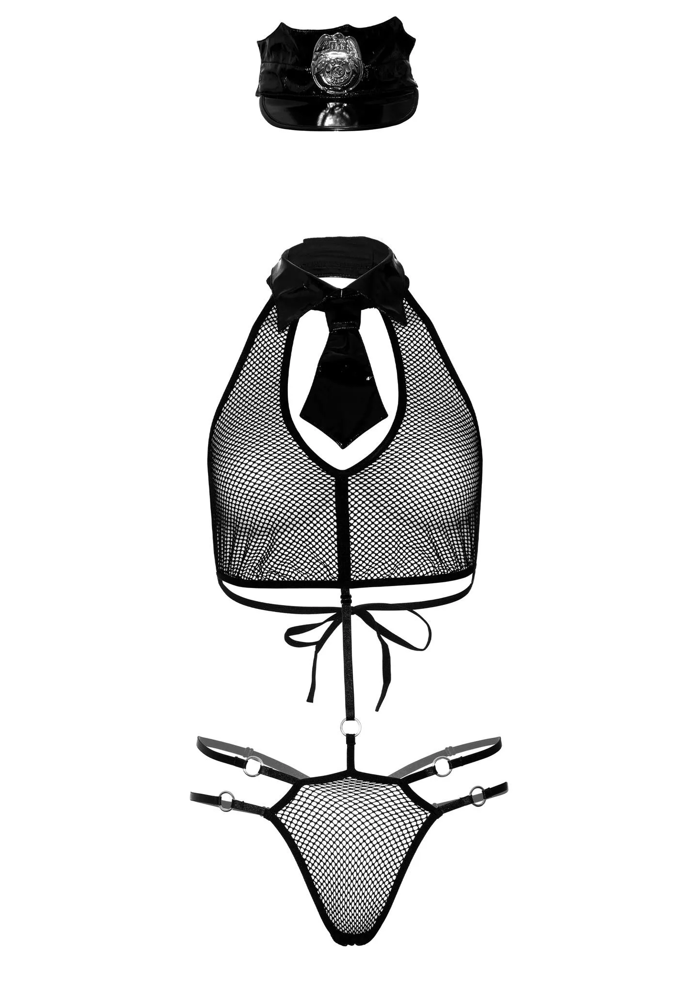 Przygotuj się na ekscytującą zabawę w policjanta dzięki zestawowi, który wzbudzi zainteresowanie i doda pikanterii każdemu wieczorowi. Zestaw do zabawy w policjanta składa się z eleganckiego trikini wykonanego z seksownej siateczki oraz modnego wetlooku z kołnierzykiem i krawatem, które z pewnością przyciągną uwagę. To idealny wybór zarówno dla osób pragnących urozmaicić swoje życie erotyczne, jak i na tematyczne imprezy kostiumowe.