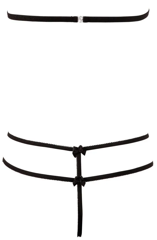 Stringi ouvert dołączone do zestawu, wyposażone w dodatkowe wstążki, dodają całości jeszcze więcej zmysłowości. Ich wyjątkowy fason sprawia, że idealnie komponują się z biustonoszem, tworząc harmonijną całość. Wybierając ten zestaw, zyskujesz nie tylko komfort noszenia, ale również niezwykłe doznania wizualne, które zrobią wrażenie na Tobie i Twoim partnerze.