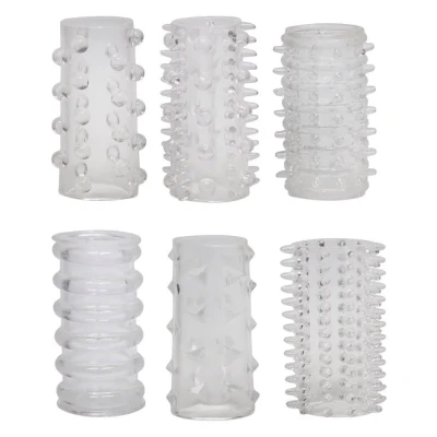 Power Penis Sleeve Set Transparent to innowacyjny zestaw sześciu nakładek na penisa, które zostały zaprojektowane z myślą o maksymalnej przyjemności i satysfakcji podczas intymnych chwil. Każda nasadka wyposażona jest w liczne wypustki, języki oraz zgrubienia, które skutecznie pobudzają partnerkę, umożliwiając jej osiągnięcie intensywniejszych i często wcześniej niemożliwych orgazmów. Dzięki delikatnemu uciskowi, zestaw przyczynia się do wydłużenia czasu stosunku i poprawy jakości erekcji.