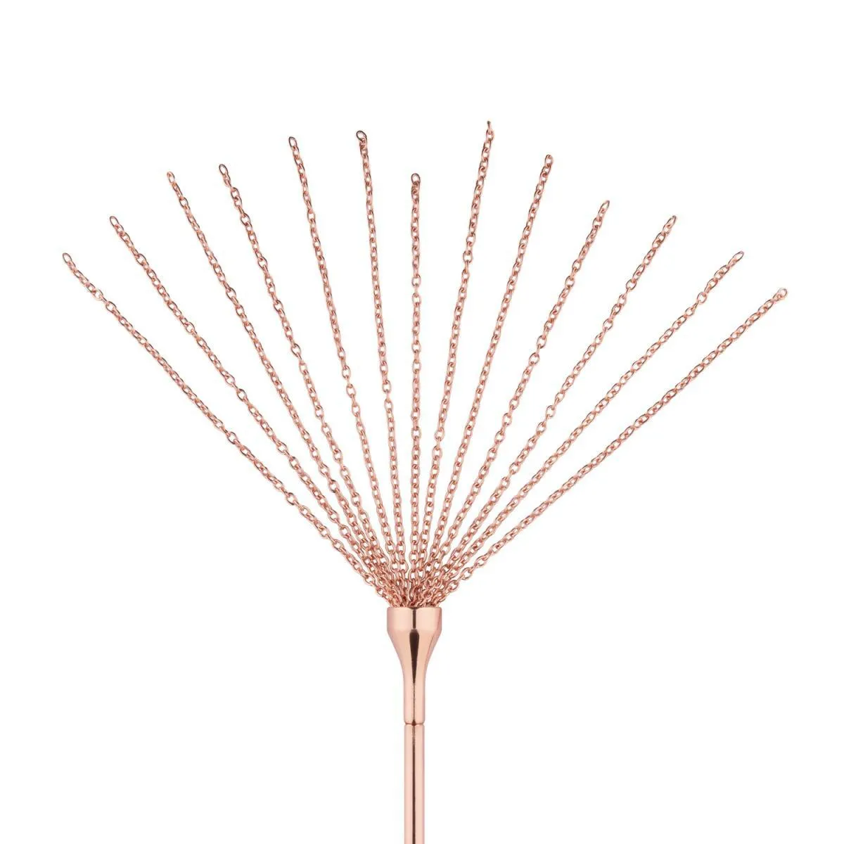 Jedna strona piórkowego łaskotnika delikatnie muska skórę, co sprawia, że zmysły budzą się do życia. Zastosowanie lekkich piórek pozwala na płynne, zmysłowe doznania, które zwiększają wrażliwość. Z drugiej strony, bat z łańcuszków wprowadza element kontroli oraz kontrastu, co czyni go idealnym narzędziem do zabaw związanych z naprzemiennym stosowaniem ucisku i głaskania. To dynamiczne połączenie sprawia, że użytkownicy mogą eksplorować różnorodne techniki pobudzania.