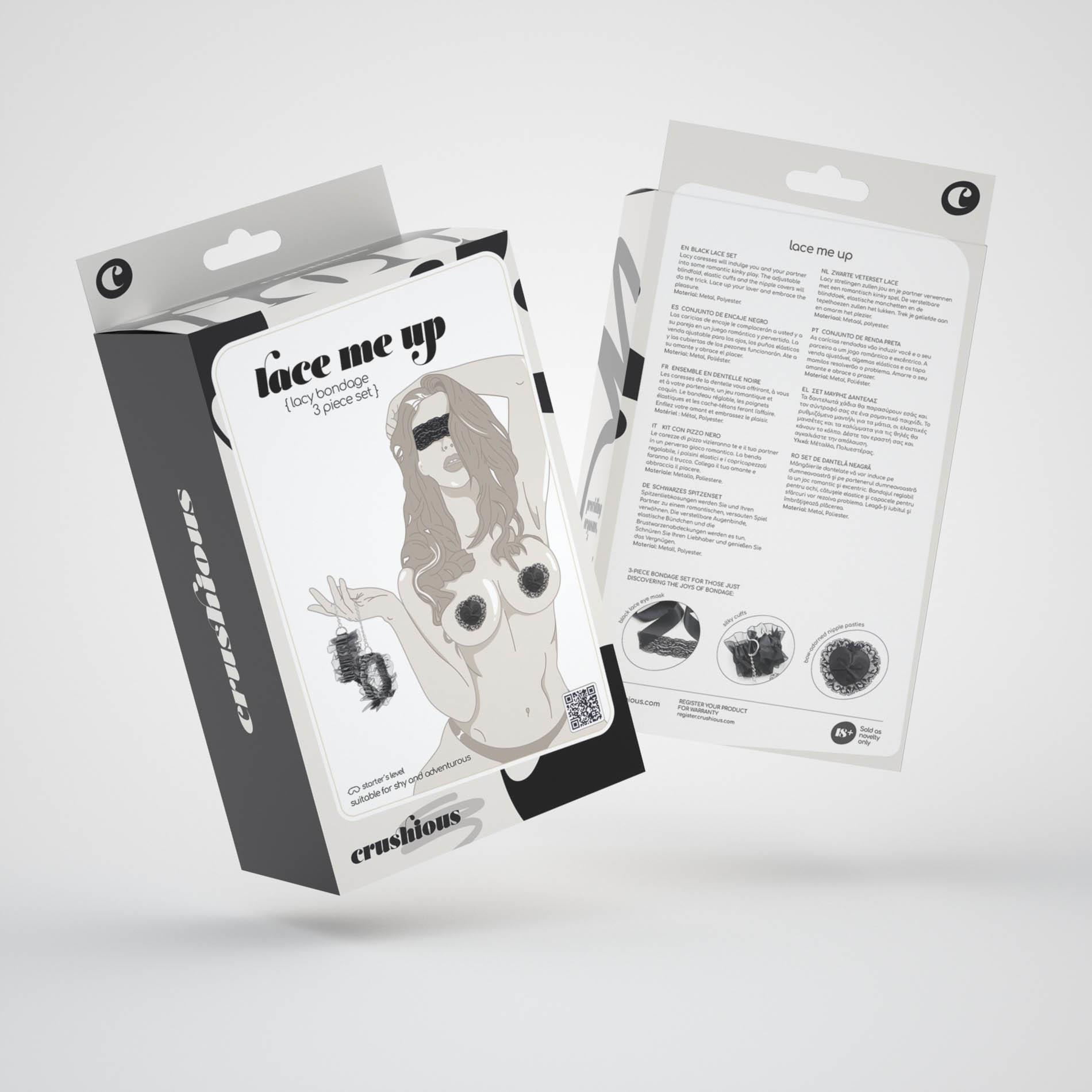 Odkryj zmysłowy świat namiętności z zestawem LACE ME UP BLACK LACE SET CRUSHIOUS. Ten ekskluzywny koronkowy zestaw bondage został zaprojektowany z myślą zarówno o osobach zaczynających swoją przygodę, jak i o bardziej doświadczonych parach, które pragną wzbogacić swoje życie intymne. Delikatne, miękkie materiały zapewniają komfortowy kontakt ze skórą, sprawiając, że każda chwila staje się niezapomnianym przeżyciem pełnym zmysłowości i dominacji.