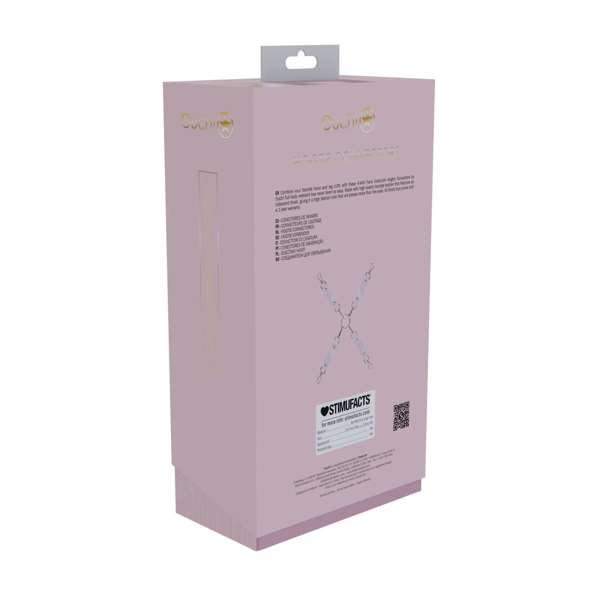 Hogtie Connectors z kolekcji Paris by Ouch! to wyjątkowy element, który pozwoli na jeszcze większe doznania w świecie BDSM. Dzięki czteroramiennemu designowi, możesz łatwo połączyć swoje ulubione kajdanki na nadgarstki i kostki, co zapewnia pełną kontrolę i nowe możliwości w grach partnerskich. Stworzony z myślą o bezpieczeństwie i komforcie, model ten z pewnością uzupełni Waszą kolekcję nie tylko estetycznymi, ale również funkcjonalnymi detalami.